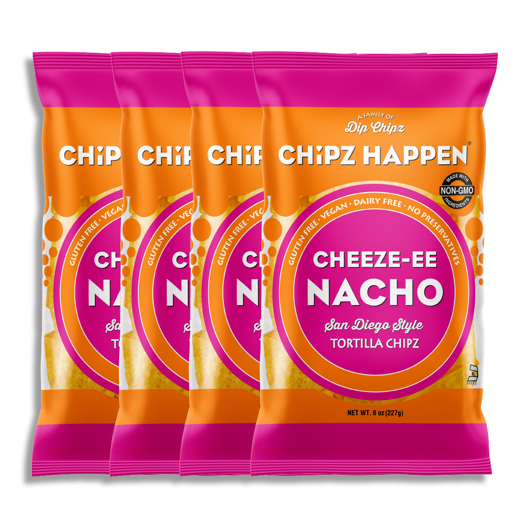 Cheeze-ee Nacho Tortilla Chipz - 4 Pack of 8oz Family Bag